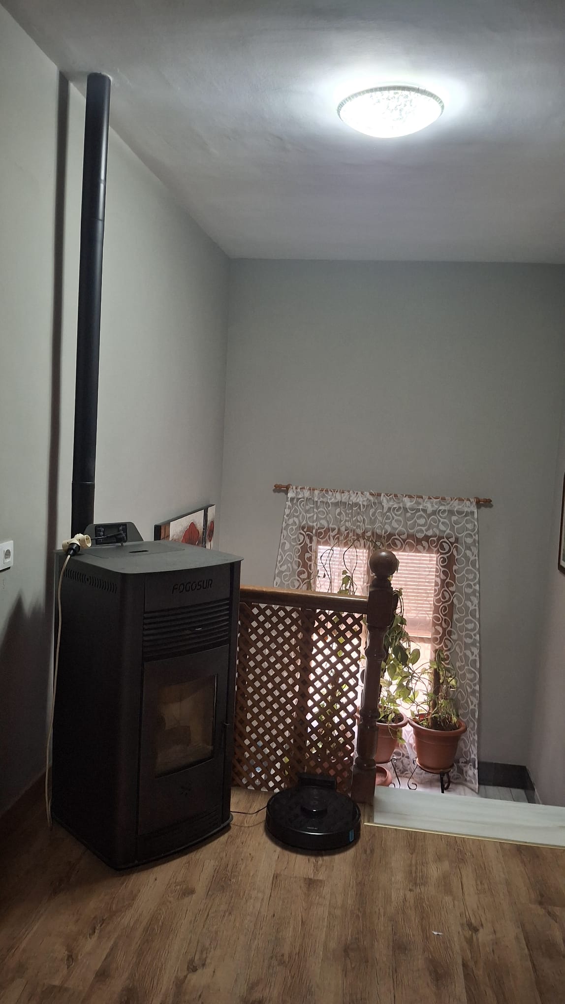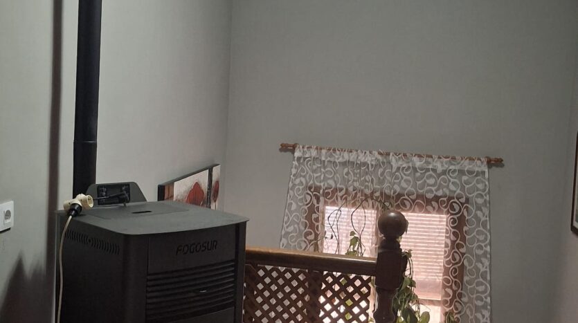 También cuenta con dos estufas de pellet, una en cada planta, que proporcionan un ambiente cálido y acogedor; placas solares